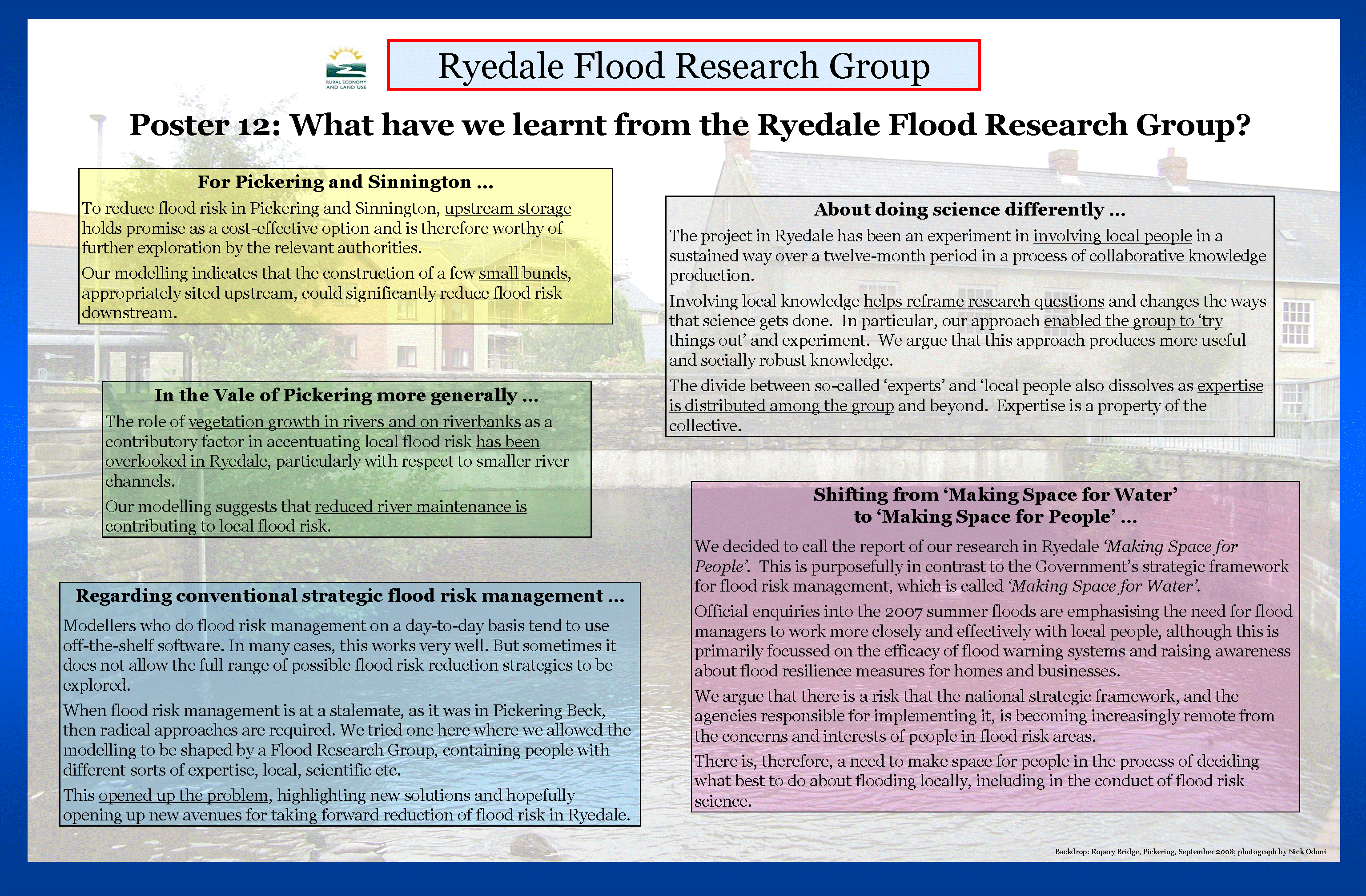 Over the past year, a group of Ryedale residents have been working with our scientists to take a fresh look at the problem of flooding in Ryedale.